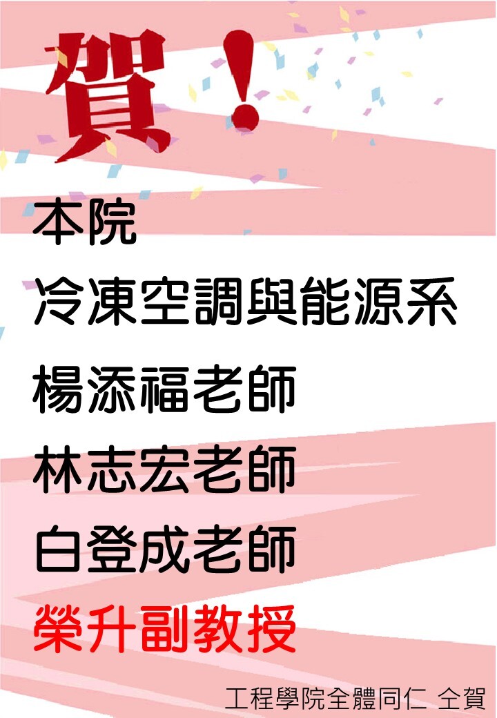 賀本院冷凍系楊添福老師、林志宏老師、白登成老師榮升副教授